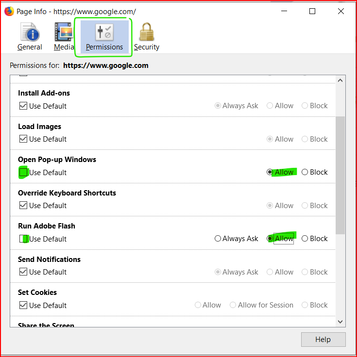 Go to the Permission tab- uncheck "Use Defaults" and select allow
