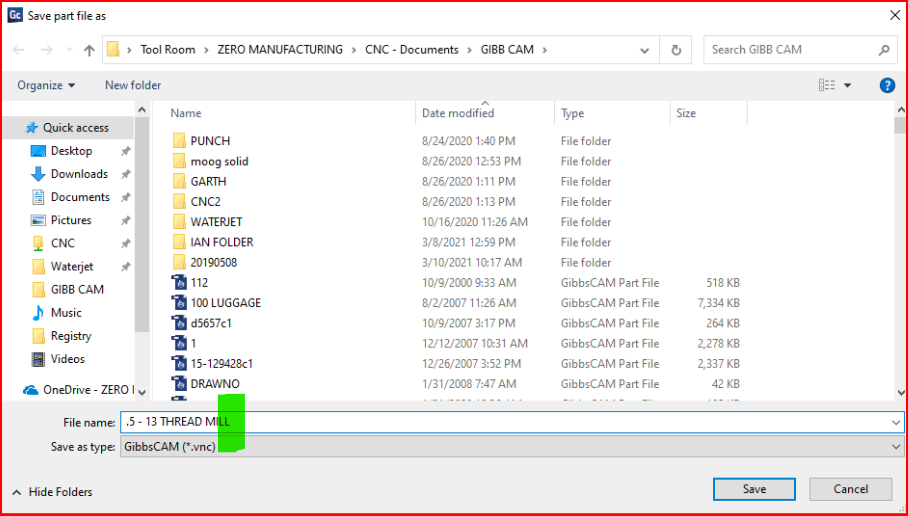 Gibbs Cam saving to OneDrive